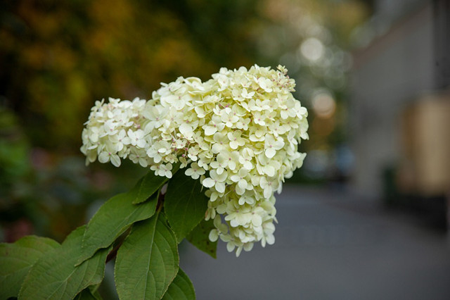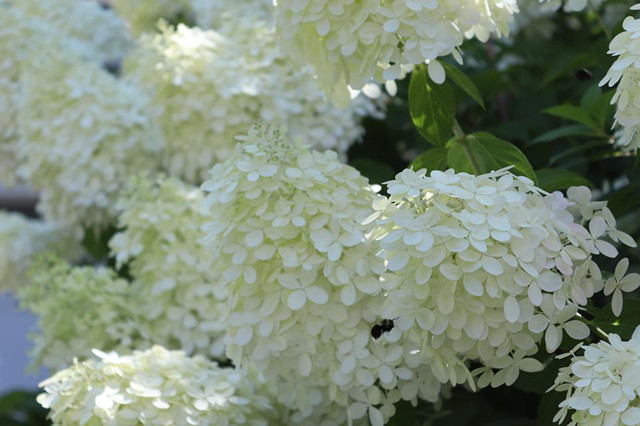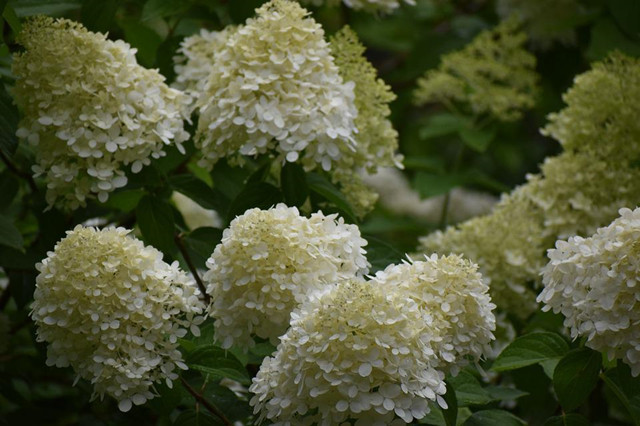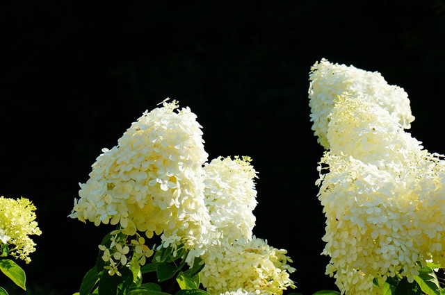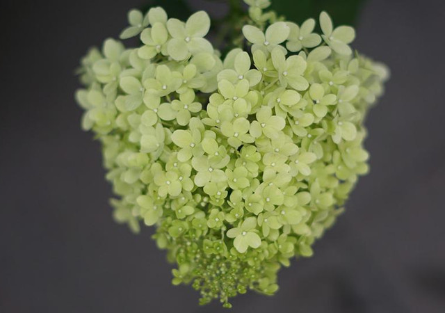 魔幻月光圆锥绣球花序的长度可达到40cm左右,花色渐变,初始是淡绿色的花朵,后来逐渐变化为白色,顶端是绿色的。夏季开放,花期长,在7~9月份开花。成熟植株的它并不小,高度达到1.8~2.4米之间,冠幅也是在1~1.5米左右,十分惊人。
