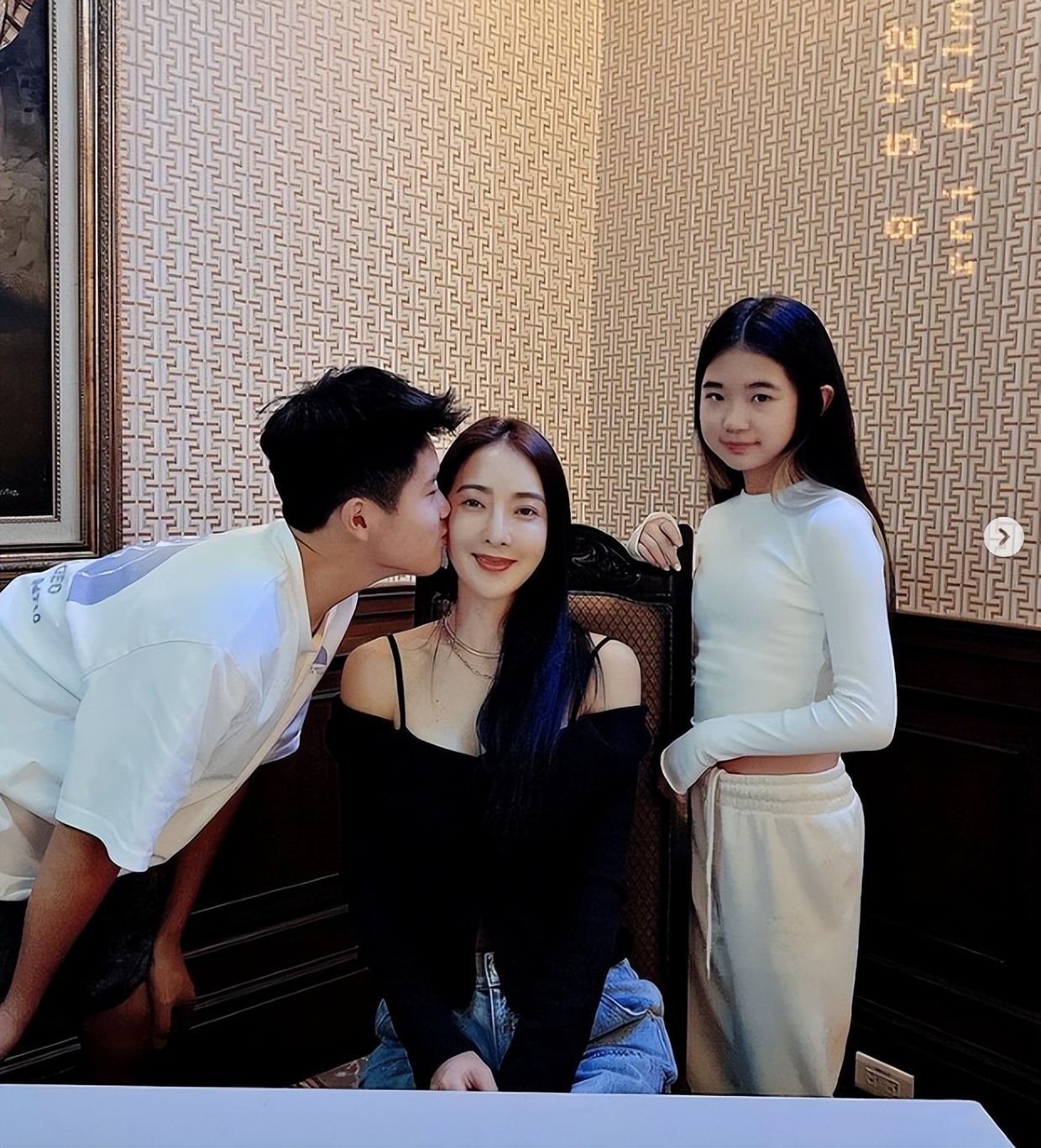 晒出的照片里,“女王”吴速玲坐在一双儿女中间。她披着秀发,化着美妆,身穿吊带上衣搭配牛仔裤,笑眼弯弯看着老公的镜头,脸上大写的幸福。虽然早已年过40岁,但吴速玲保养得非常好,脸上看不到丝毫岁月痕迹,满脸胶原蛋白,美丽依旧。