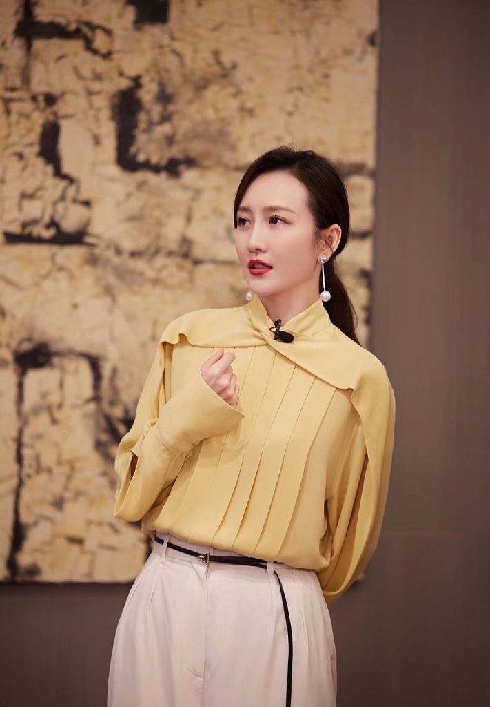 2022年5月8日,王鸥发布一组写真,她身穿黄色衬衫气质优雅。