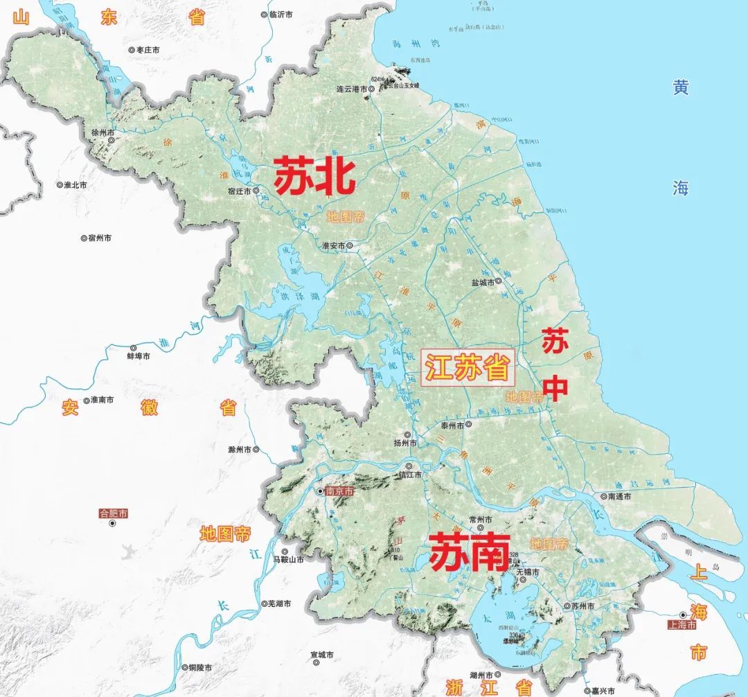 在地理上,江苏省一般以长江以界,分为苏南和苏北。另外还有一种分法,以淮河为界,分为苏中和苏北。苏南是全国经济最发达的地区之一,尤其是苏锡常,跟着上海老大哥,在省内的经济优势明显。