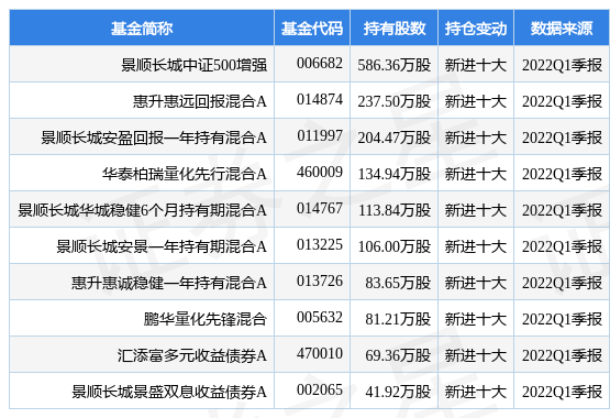 其中持有数量最多的基金为景顺长城中证500增强,目前规模为16.63亿元,最新净值1.3189(5月6日),较上一交易日下跌2.42%,近一年下跌8.48%。该基金现任基金经理为黎海威 徐喻军。