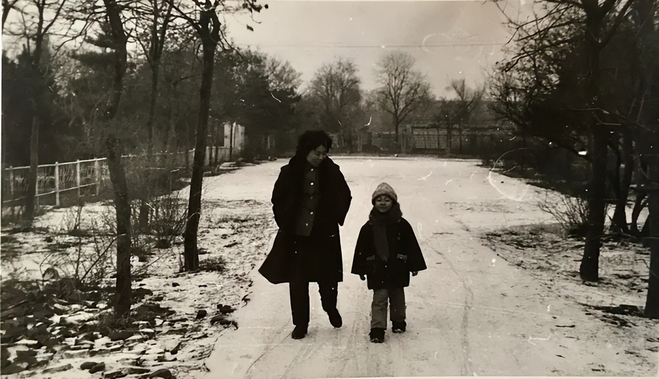 一大一小走在雪地里,显得那么和谐,那么幸福。画面很温馨。