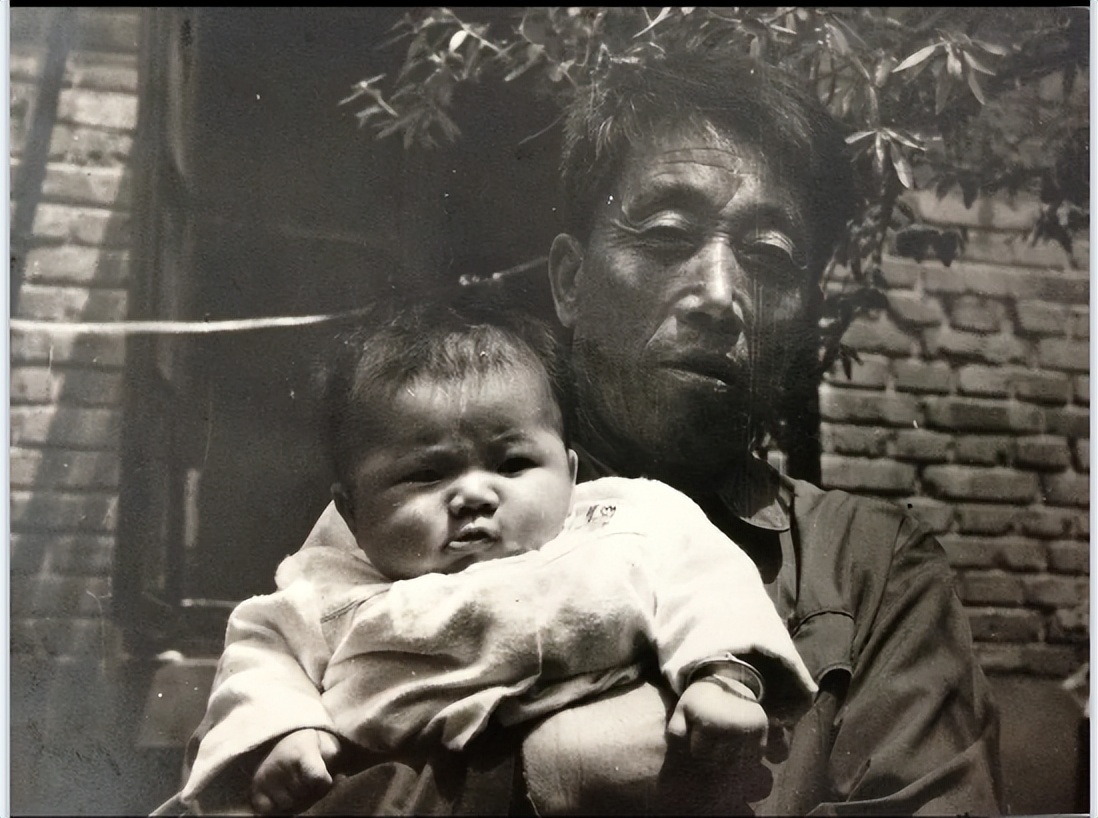 一个爷爷抱着小孙女。小孙女还很小,爷爷的动作显得很笨拙。从他那饱经风霜的脸上,可以看到幸福的笑容。