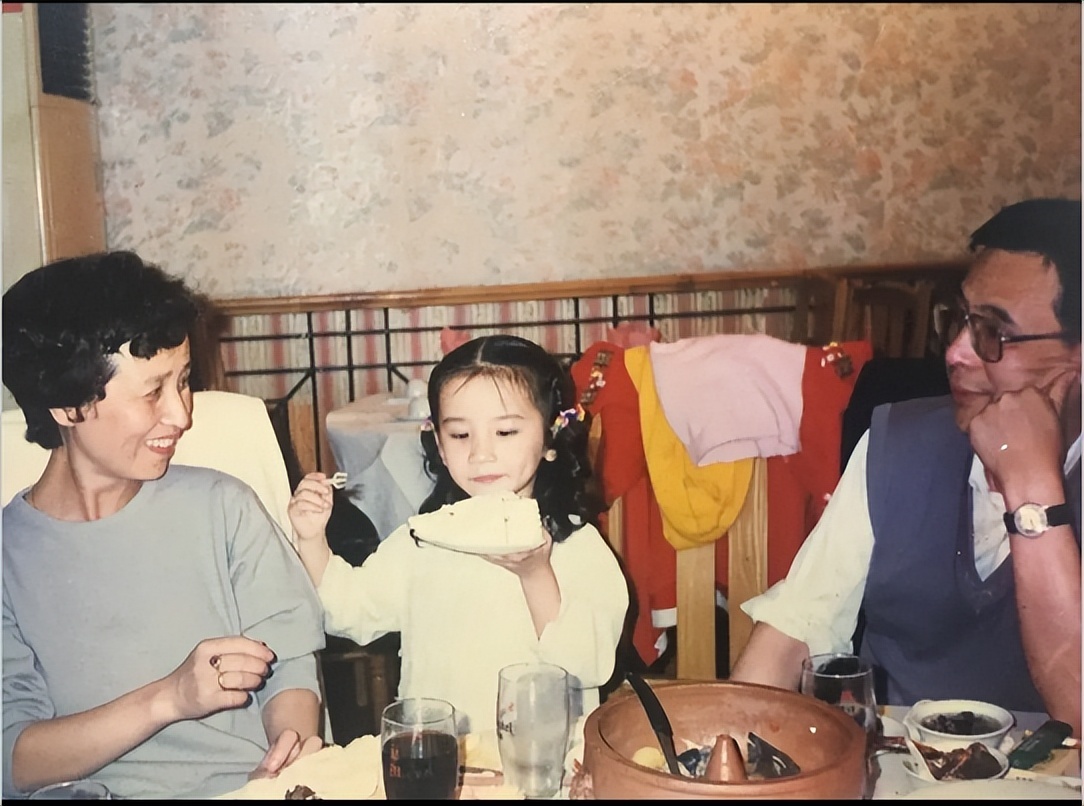 这张照片好温馨啊。从照片上看,小孙女正在过生日,手里拿着一大块蛋糕,正懂事地给奶奶(姥姥)递过去。爷爷(姥爷)正用一种欣赏的、慈祥的目光看着女孩子。这样的家庭,在当年应该是富裕的家庭吧!