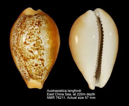 兰福珍宝贝,又名兰福希达贝、兰福宝螺,拉丁文学名Austrasiatica langfordi (Kuroda, 1938) ,其中“langfordi”是赐名给居住在日本横滨市的贝壳收藏家Daniel B.Langford(1882-1954),音译为“兰福”。兰福珍宝贝一直深受收藏爱好者追捧,是极其名贵的稀有贝类。
