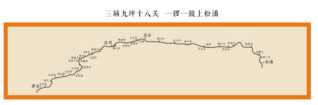 “三脑九坪十八关,一锣一鼓上松潘”在松潘城,至今流传着这样一句耳熟能详的民谣,它指的是一条从灌县出发通往松潘和茂县的茶马古道,全长700多公里,这条古道被称为“松茂古道”。从成都方向沿岷江河谷进入松潘,首先经过镇坪乡,这里有着民谣中的“一坪一关”即:镇坪和平定关。