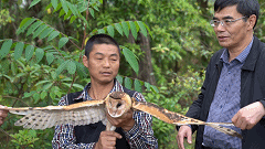 近日,护林员巡山时,发现路边的草丛中卧着一只大鸟,已经奄奄一息无力飞行。