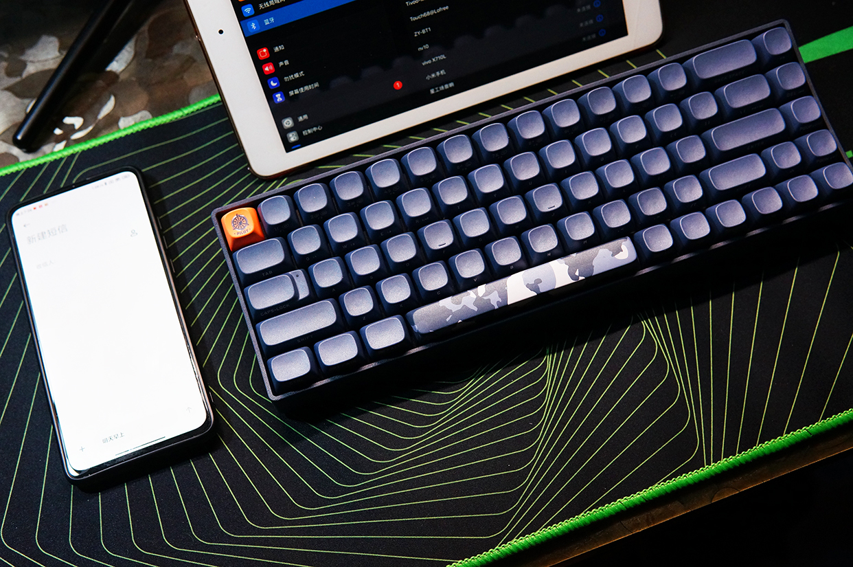 我两其中两组蓝牙分别连接到手机和ipad上,打字时的速度明显提升,感觉不到延迟,而且按键也不费劲,比起手机的触屏来堪称生产力工具。