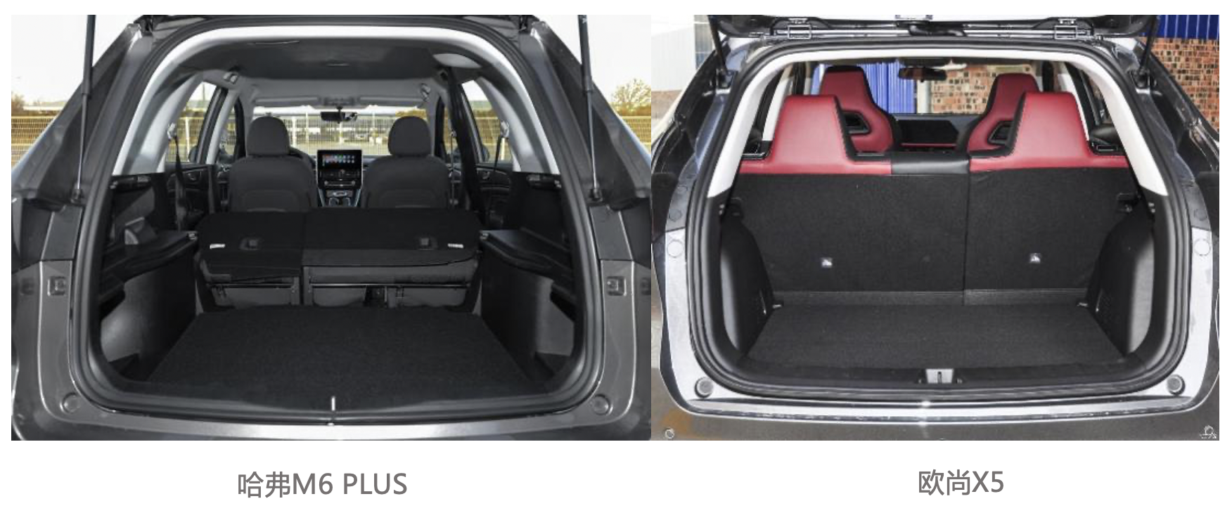 两者讲完,面试官与他们进行了互动。互动中面试官发现,得益于哈弗M6 PLUS的车长更长、车高更高,在实际乘坐体验时,哈弗M6 PLUS相较欧尚X5头部与腿部空间更大。再转身来到后备箱,却不看不知道,一看吓一跳,欧尚X5的后备箱明显比哈弗M6 PLUS小了很多,不仅如此,欧尚X5的后备箱空间为造型还做了“牺牲”,隆起的轮拱影响了整体性,实用性大大降低。