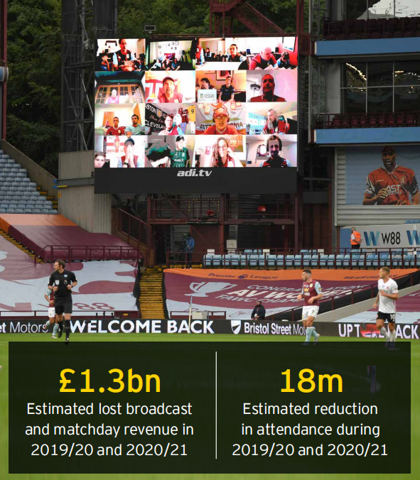 不过,疫情期间英超同样遭遇了损失。19/20赛季和20/21赛季,英超的转播收入和比赛日收入总损失达到了13亿英镑,观众数量累计减少1800万人次。