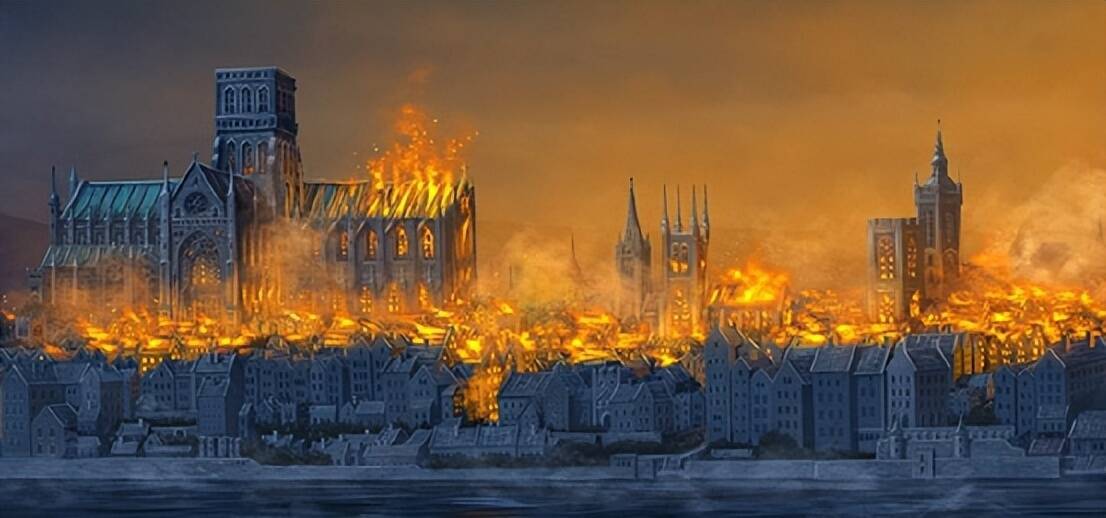 仿佛是风水轮流转,在霍尔姆斯烧了荷兰商船队之后一个月,1666年9月10日,一场罕见的火灾降临到伦敦。连续烧了4天4夜,伦敦城有2/3被焚毁,经济损失达800至1000万镑。这个经济损失已经超过了两次与荷兰战争的费用,英国就是再有钱也经不起这么折腾。