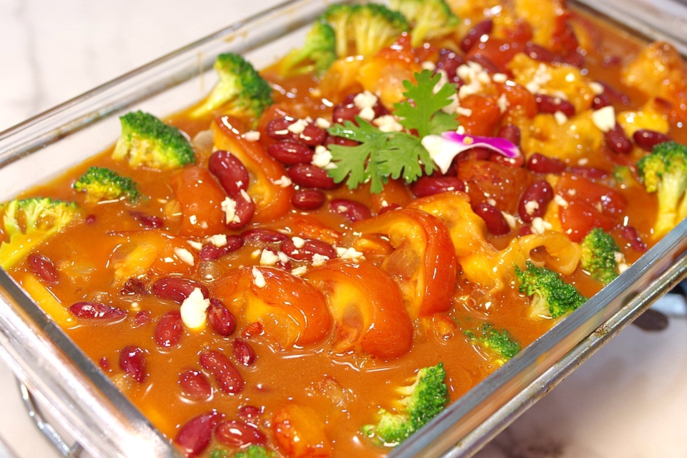 富贵乾坤牛中掌:要不是服务员报菜名我甚至以为是猪蹄,那牛蹄炖得软糯适口,吃起来一点不费劲,汤汁浓稠红亮看着也喜庆,搭配酥烂的红豆和碧绿的西蓝花,营养均衡吃点也多。