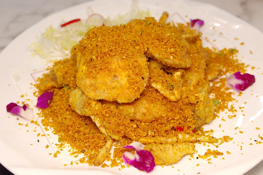 避风塘炒蟹:除了坚持传统的酒楼,一般排档师傅不愿意做这么麻烦的菜,从足以用来拌白米饭的蒜酥上就必须给这道菜高分评价,稍显遗憾是蟹件挂糊厚重了点,但也正因为如此汁水保留较好,蟹肉相当鲜嫩。