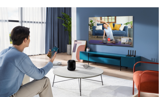 基于Harmony OS强大的分布式能力,华为智慧屏SE系列支持一碰投屏,无需复杂的连网和配对过程,只需将华为手机轻碰遥控器上的华为分享图标,即可快速将手机界面上的内容投到大屏上,实现快速连接。而且像是现在居家的情况比较多,对于很多居家的朋友们来说想在家里也能够健身,那么在华为智慧屏 SE系列上就可以实现。打开它的AR趣动健身,拥有的敏捷摸球、侧滑摸桩、顺序摸球三款游戏,就能够让一家老小在家里能动起来,还能让枯燥的运动变得更加有意思。