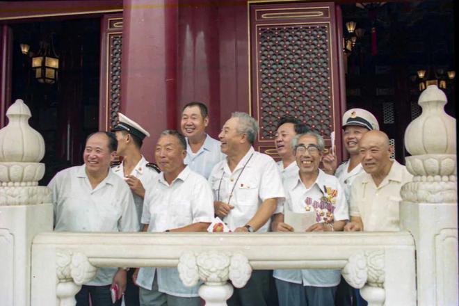 1999年国庆50周年,王天保(前排左二)与海军航空兵战友在天安门(原海航政治部牟健为摄)