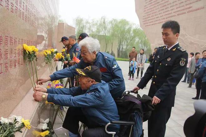 密山市东北老航校研究会顾问王天保老前辈带病参加清明缅怀航空英烈活动,向战友们献花致敬 (摄/陈龙狮)