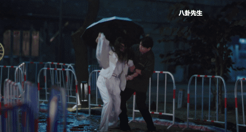 另一场戏是男主送女主出小区,当时下着大雨,两人同撑一把伞,女主差点摔倒,男主及时扶住了她,于是两人短暂地对视了一下。哪怕导演这镜头拍得再好,潘粤明这颜值实在让人嗑不下去,只想让他放开王鸥。