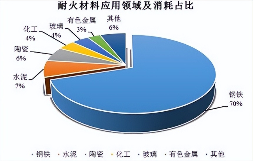 那究竟啥是耐火材料呢?简单来说就是耐得住火烤,因为这种优异的特性,被应用于钢铁、建材和有色等高温工业。而钢铁行业是耐火材料最大的下游应用领域,消耗量高达70%。我国也凭借着制造大国的身份,成为耐火材料的生产国和消费国,产销量占全球的一半以上。