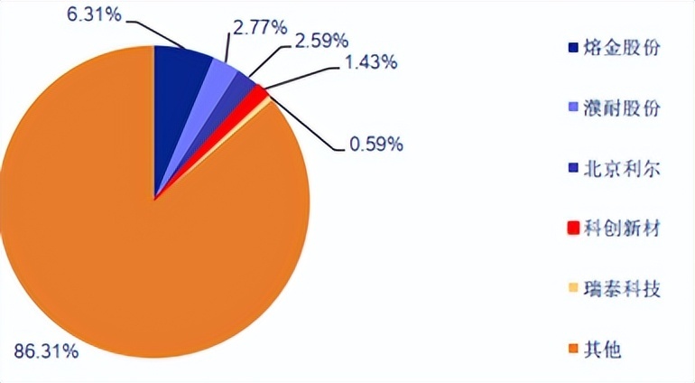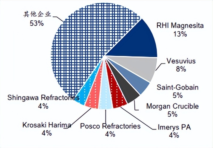 像我们熟知的奥镁、维苏威占据了全球1/5的市场。而且如果把国内市场剔除,海外巨头在其他市场的市占率会更高。
