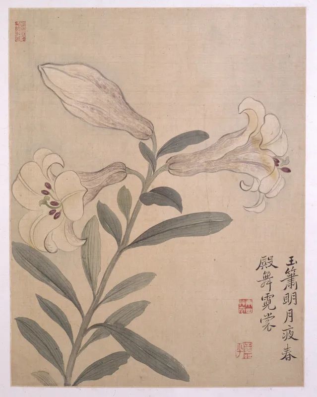 此写生花卉图册展现了恽寿平“没骨花卉”画的基本风貌,造型准确,构图自然生动,赋色明丽秀润。