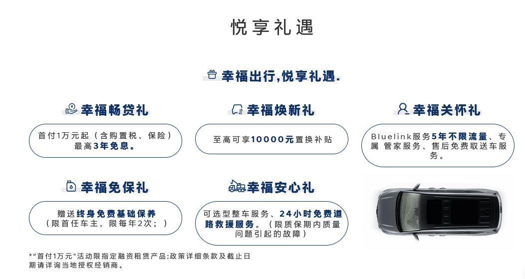 北京现代为了让消费者能够有一个更好的购车、用车体验,享受到来自“家用MPV普及者”细致无微的呵护,在库斯途16.98~21.88万的超值售价外,还推出了一系列悦享礼遇。在购车环节,北京现代提供了“幸福畅贷礼”,首付一万元起(含购置税、保险),最高三年免息贷款;对于置换客户的“幸福焕新礼”,至高可享10000元的置换补贴,从而近一步拉低了高品质MPV的购车门槛。于此同时,购买库斯途的首任车主,还可获得“幸福免保礼”,享有每年2次的免费基础保养服务,在很大程度上消除了用户的养护之忧。