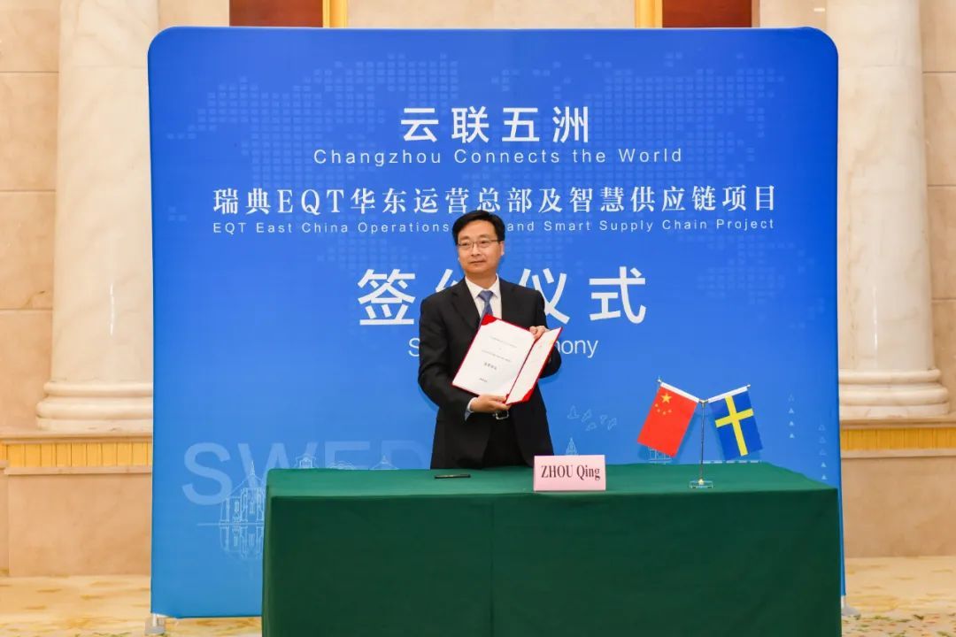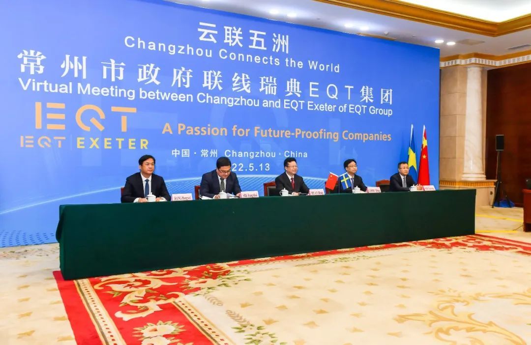 5月13日下午,常州市举行云联五洲——常州·瑞典殷拓(EQT)集团云签约仪式,总投资1.5亿美元的瑞典殷拓集团华东运营总部及智慧供应链项目正式落户常州高新区,副市长桓恒通过视频连线方式,会见了瑞典殷拓集团(EQT)高层并见证签约。
