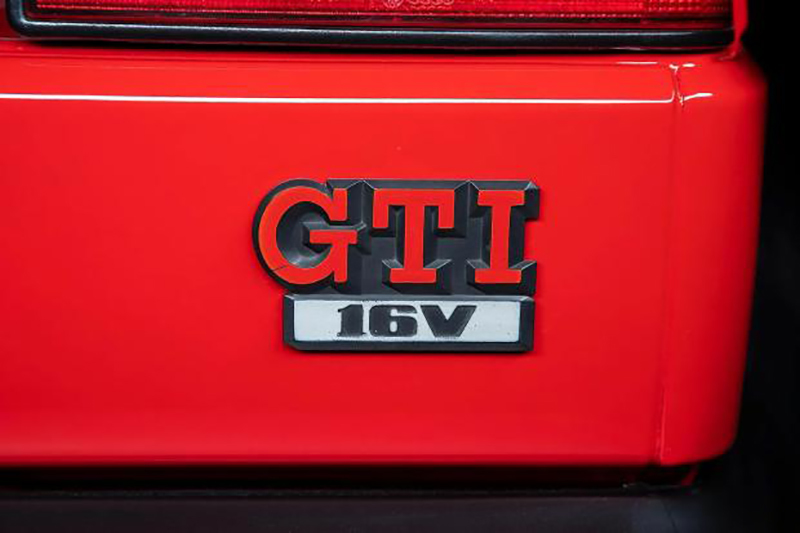 然而卖出高价的并不是第一代GTI,今天的主角是GTI的升级版车型GTI 16V,1986年,大众推出了第二代高尔夫GTI的升级车型——高尔夫GTI 16V。该车外观在GTI原有基础上改为四圆头灯,除进气格栅外圈的红边之外,前后保险杠和侧门防擦条都被红色装饰线所点缀,进气格栅上的GTI标识下方增加了红色“16V”字样。