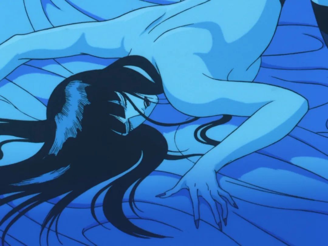 在或明或暗的蓝色中飘然而立,好似带着妖气向我们裹挟而来。这在后来被称为标志性的“川尻蓝”(川尻ブルー)。