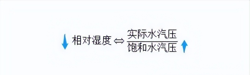水汽含量不变时,相对湿度与气温呈负相关。因为水汽含量不变,实际水汽压也不变,当气温高时,饱和水汽压高,相对湿度就小。