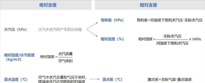 一般表示水汽含量的物理量可以分为绝对含量和相对含量两类。