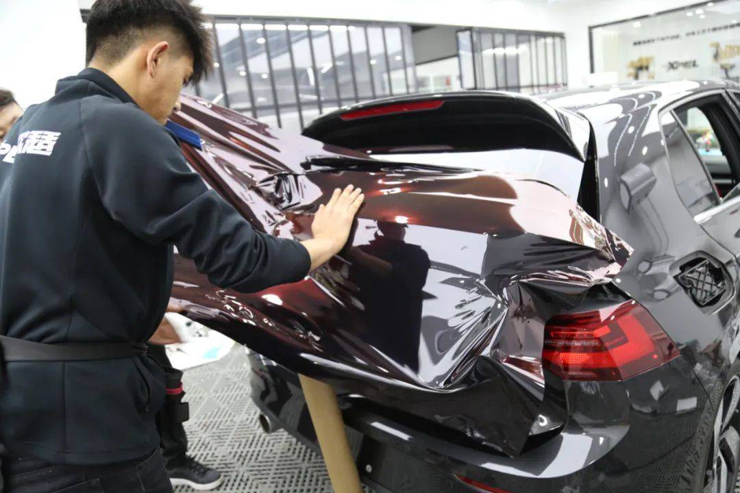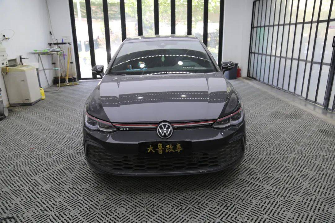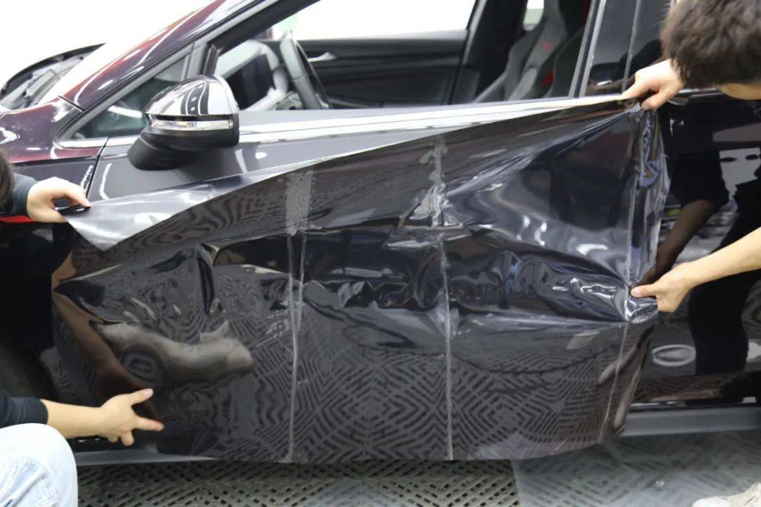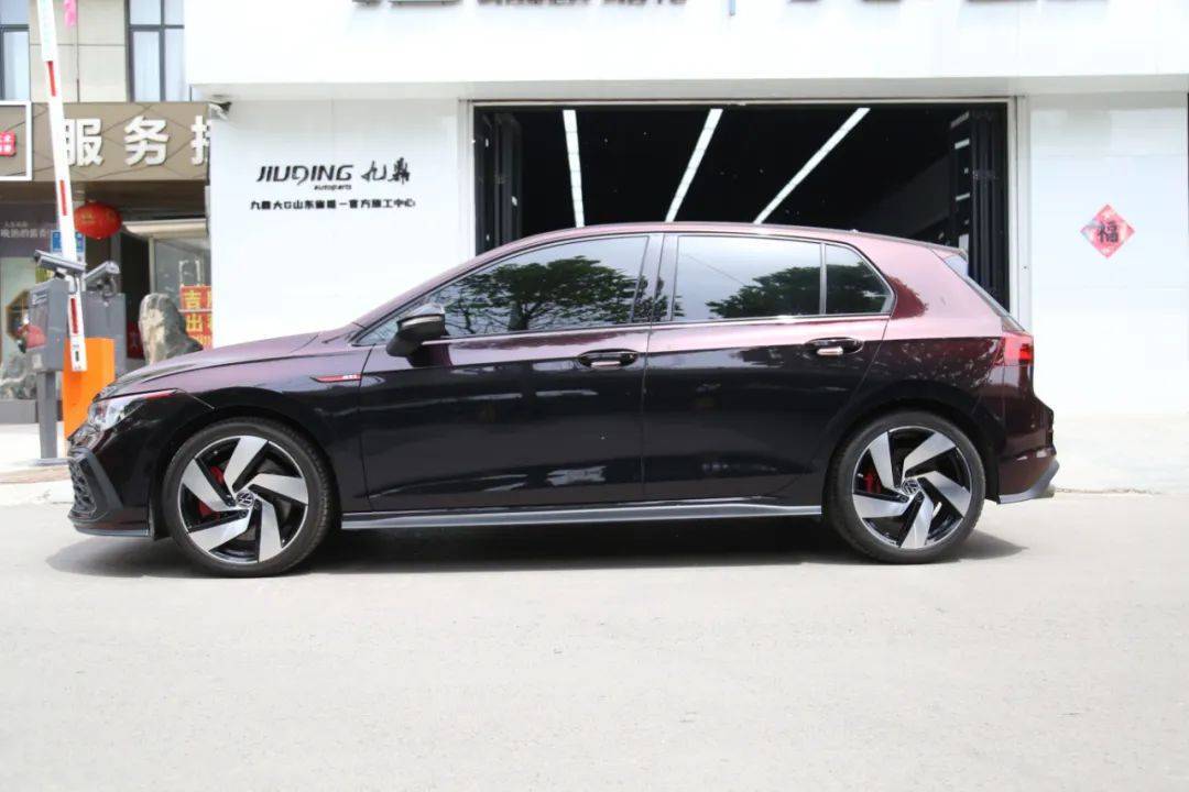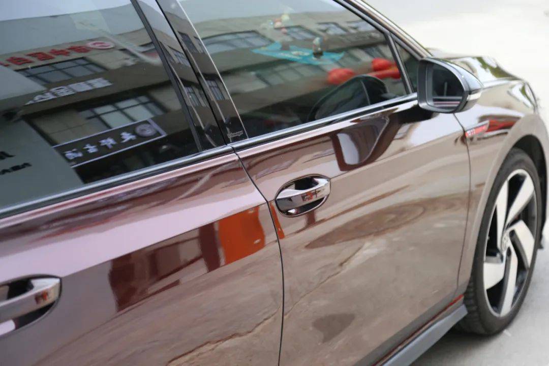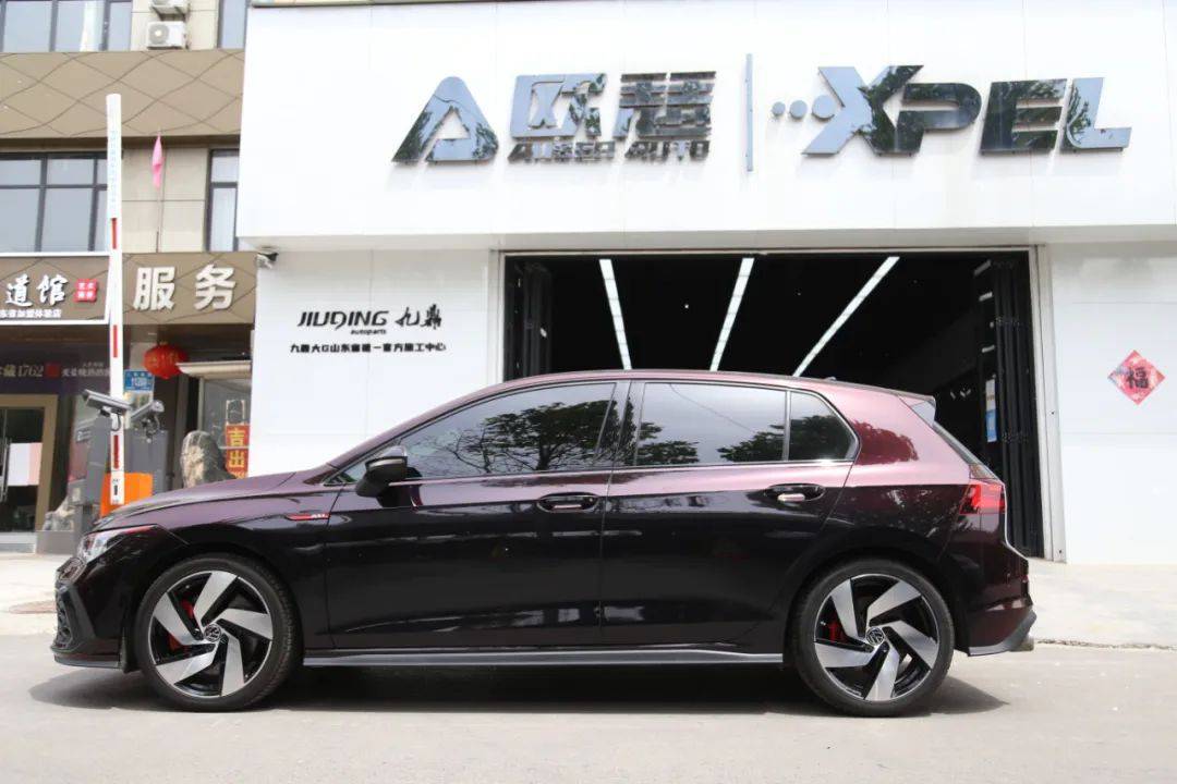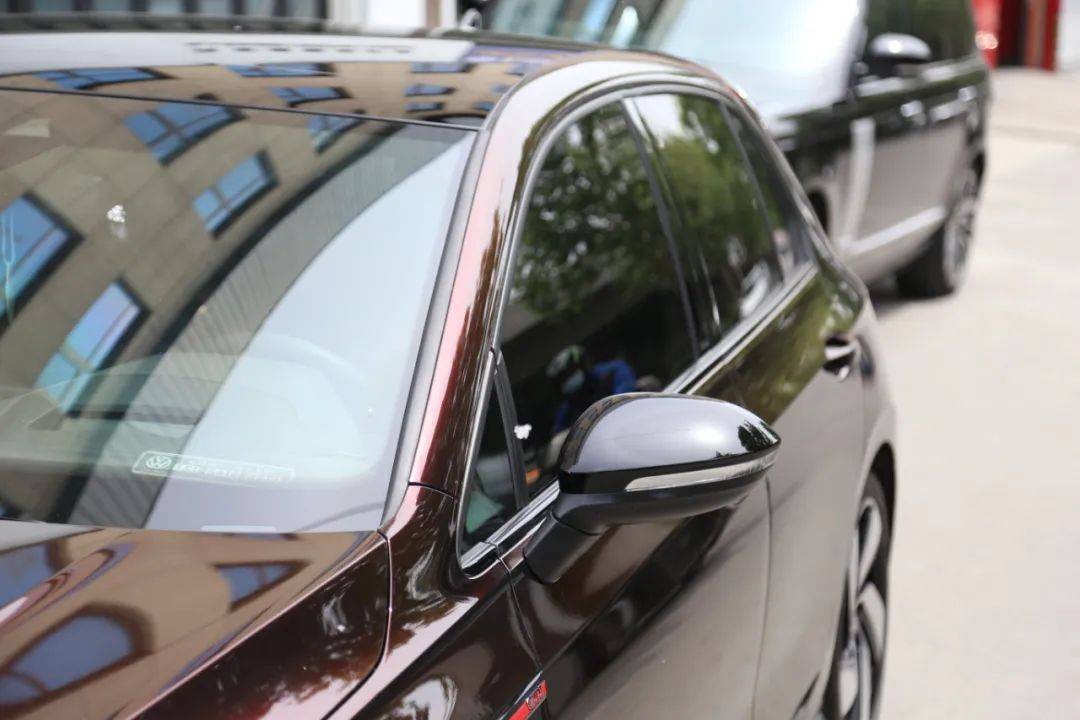 今天贴一个会变色的改色膜——黑魅红,这台GTI原车的颜色跟黑魅红不变色的时候很像,这款改色膜在光源下是会黑红渐变 。