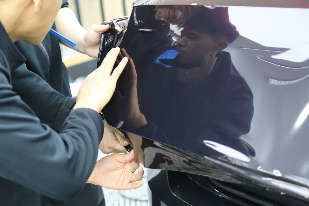 贴膜前的清洗工作非常重要,不仅要把表面的污渍清除干净,还要用软毛刷清洁缝隙,并把肉眼难以识别的水渍及角质等用洗车泥进一步清洁。