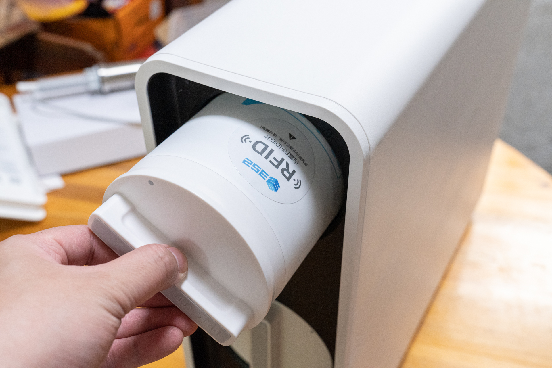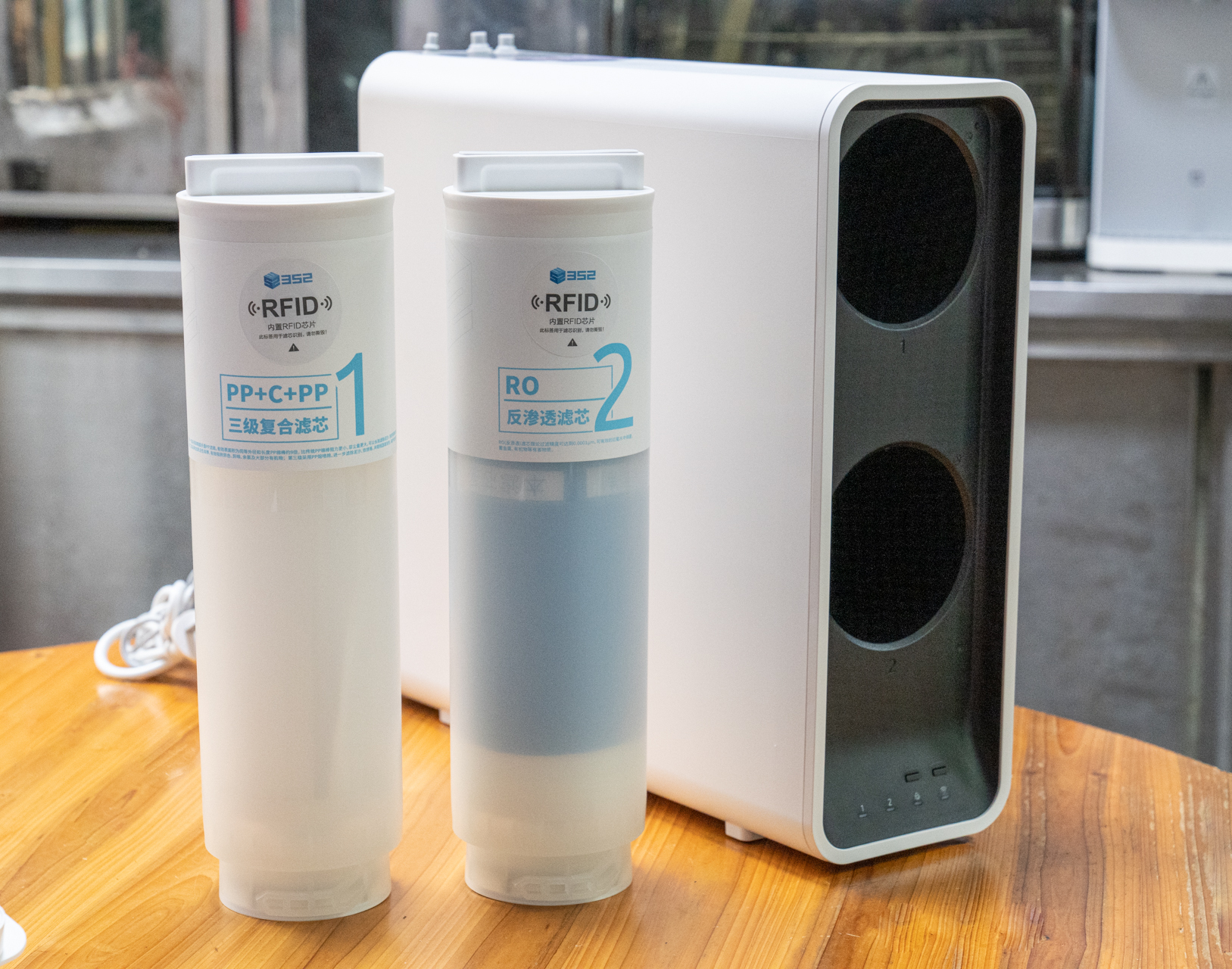 每只滤芯上都带有RFID芯片,它的作用就是根据流量和TDS值自动计算滤芯剩余寿命,通过APP就可以查询记录。这点我就深有体会了,使用过以前的净水器因为多级滤芯分级不一样,所以更换的时间也不一样,每次更换完之后都要用记号笔在滤芯上标注更换日期,避免遗忘,很不方便。