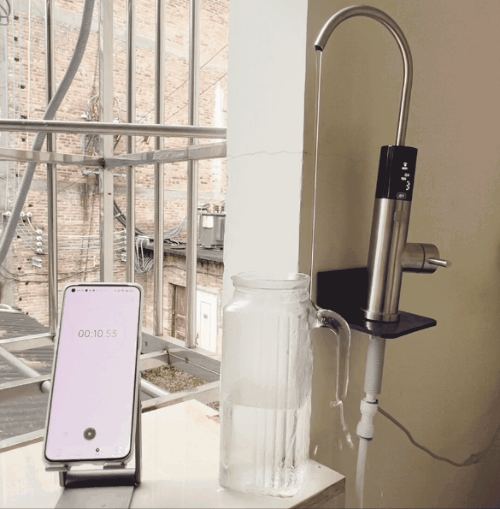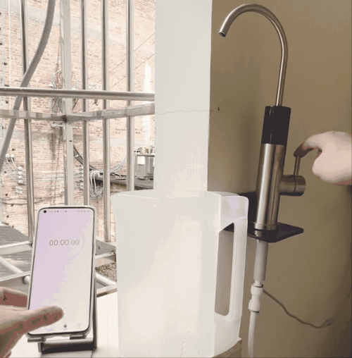 在APP中设定出水400ml,通过上动图,可以看见接一杯400ml的水,仅仅需要9秒就可以接满,速度真的很快!