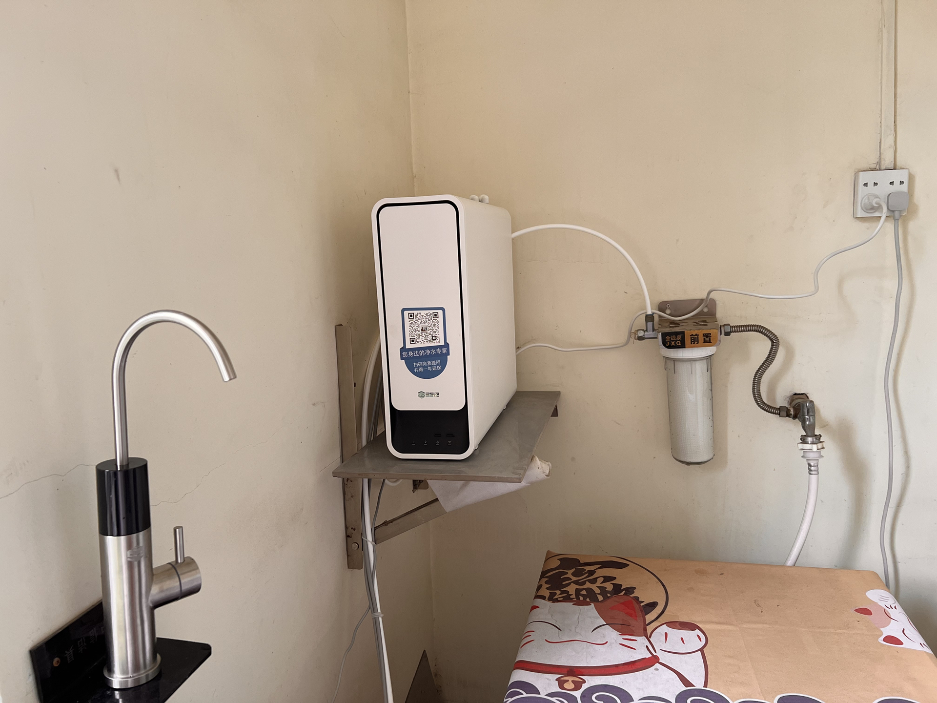 352在安装好净水器之后,后期也会电话回访记录安装情况,例如有没有额外收费、对安装师傅是否满意等,服务非常到位。我这里是加装了前置过滤,因为家里房子是在老宅区,所以水管设备都比较老旧,停水导致水管中的沉积物回流容易造成滤芯堵塞,为了保证正常使用。加装的前置过滤使用的是PP棉,价格也很便宜,成本也是4,5元一只。