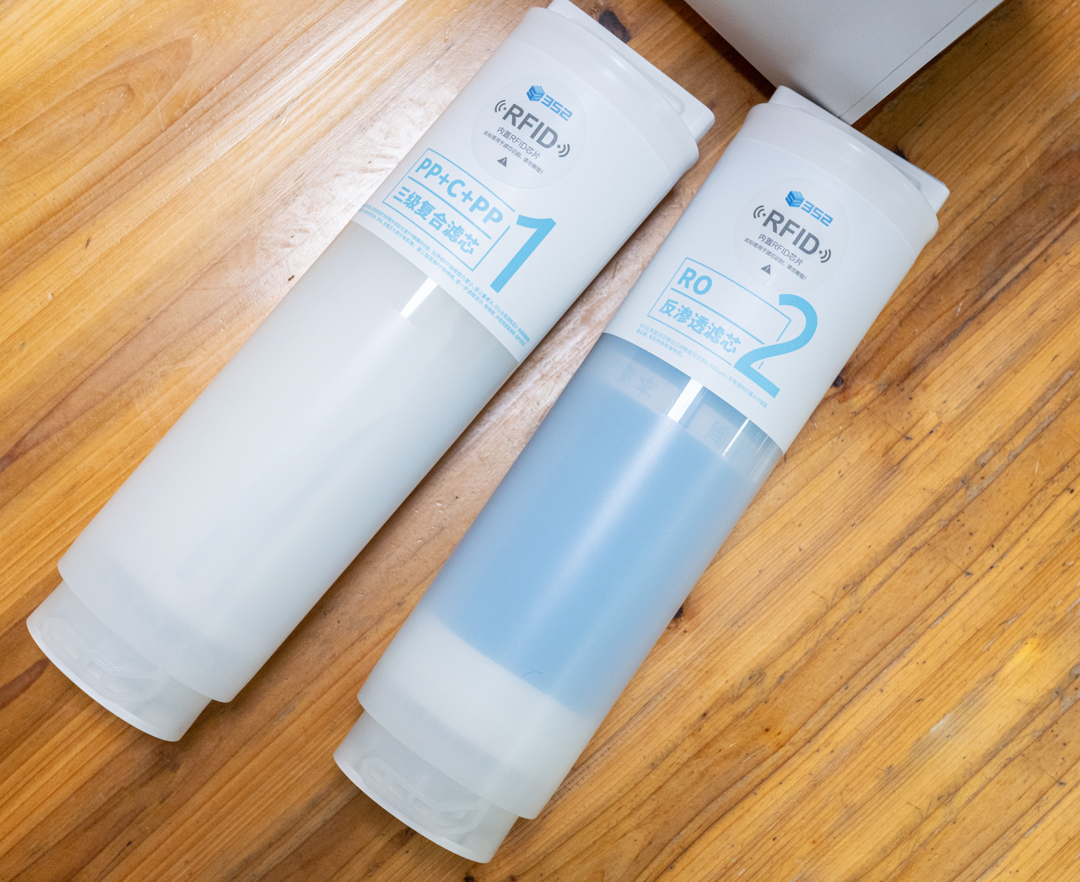 352净水器S130滤芯部分使用两只超大滤芯,拿在手里相当的重,1号复合滤芯为:三合一复合滤芯,采用PP绵+活性炭+PP折纸,可以高效的去除大颗粒物,做到净化作用,相当于传统净水器的3只滤芯集成在一起,不但节省空间,而且更换更加简单。2号滤芯为RO反渗透滤芯,采用了100%杜邦陶氏RO膜片,过滤精度达到了0.0001微米,不仅使用寿命长,脱盐率也很高。这款净水器通过双滤芯可以有效去除自来水中的重金属、水垢、余氯和细菌等多种有害物质,改善水体口感,呵护全家人的用水安全。