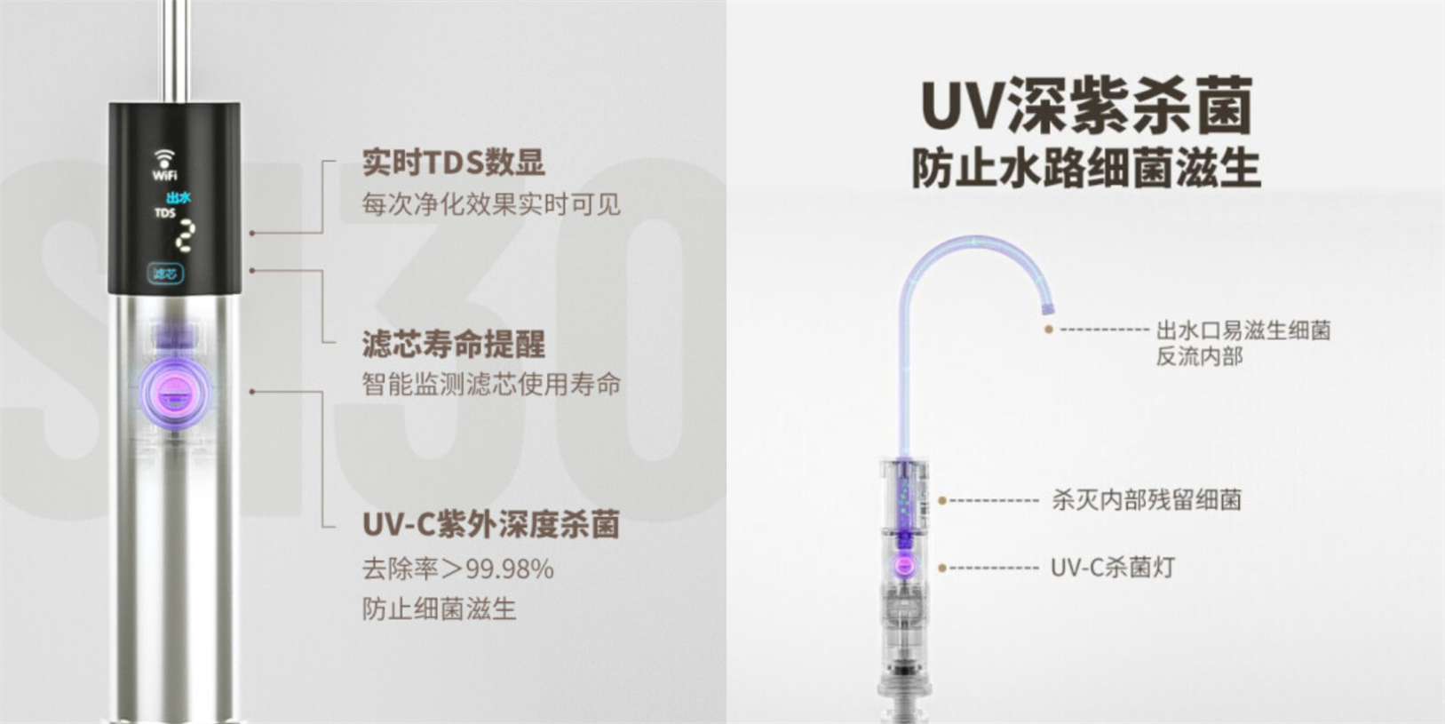 出水量大小和UV杀菌