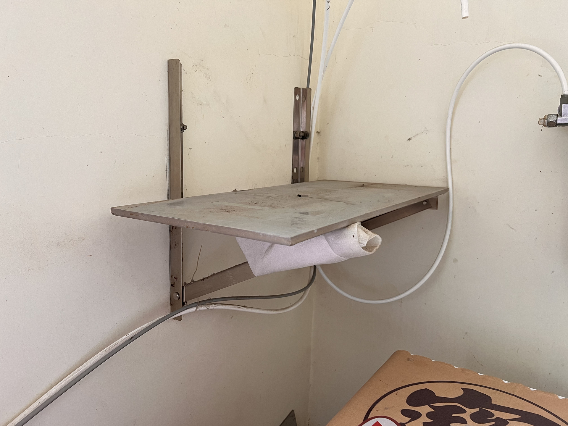 安装计划:利用空调支架承托352净水器S130,上网买一个L型支架安装水龙头即可,其他水路线管走线依旧。采用空调支架是因为支撑力够大,352净水器S130净重14KG,在接入滤芯注水进入之后会变得更重。空调支架会比较长,利用电锯切割过长部分,打磨支架口防止尖锐伤人,利用冲击钻在墙壁打孔,用膨胀钉固定好支架即可。