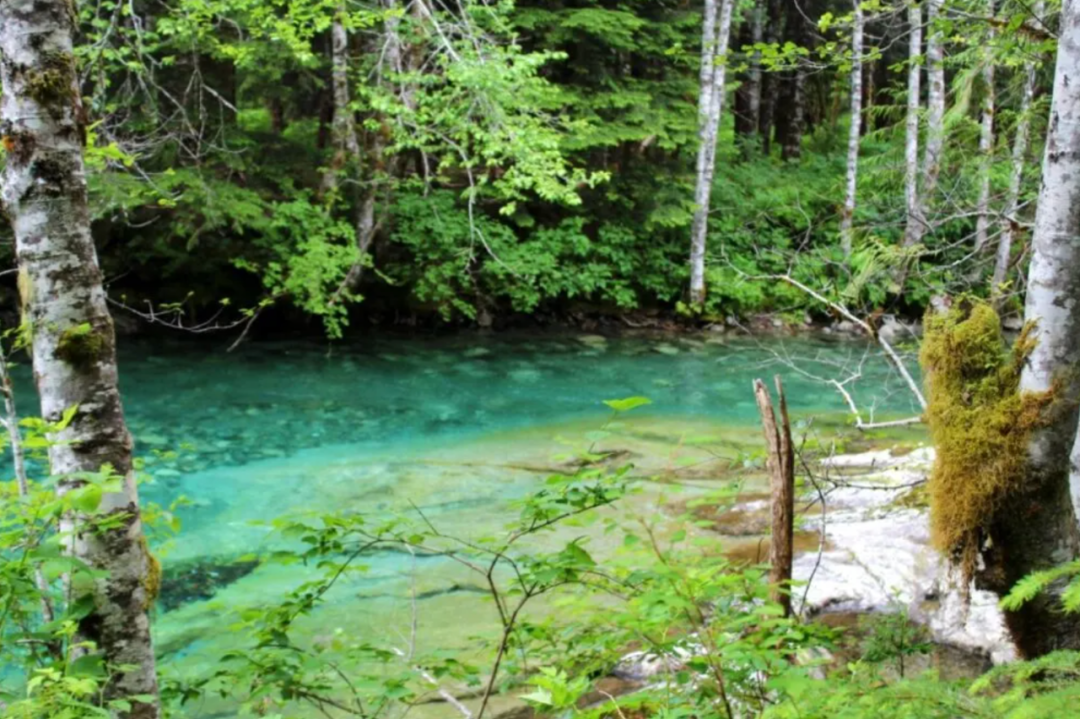 Trail穿过茂密的温带雨林,从郁郁葱葱的树木到浓郁的棕色蘑菇、生机勃勃的野花和碧绿的河流,到处都是五彩的。