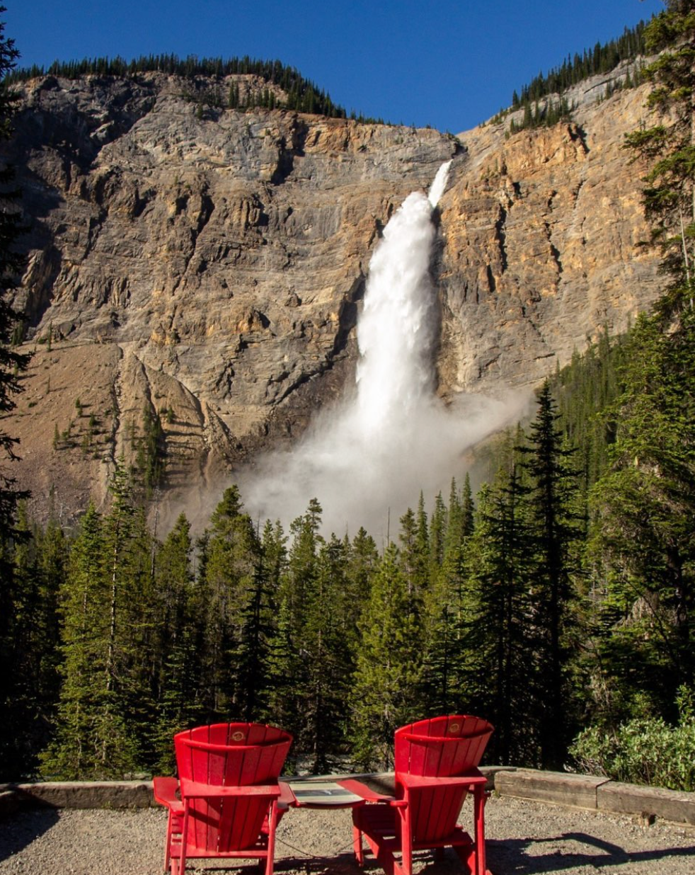 塔卡考瀑布(Takakkaw Falls)高384米,是加拿大第二高的瀑布。它位于幽鹤国家公园,飞流直下,水花四溅,其怒吼声遍及整个山谷,荡气回肠。其上的达利冰川(Daly Glacier)为塔卡考瀑布提供了生生不息的水源。每逢山顶冰雪融化之际,就是瀑布最具震撼力的时节,此时瀑布的水量会猛增,其流势会比以往更加凶猛、更加壮观。