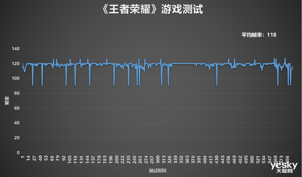 一局游戏平均帧率为118,除了偶尔会掉到90帧左右,其余时间基本都在115-120帧,没有什么卡顿的问题,表现还是不错的。