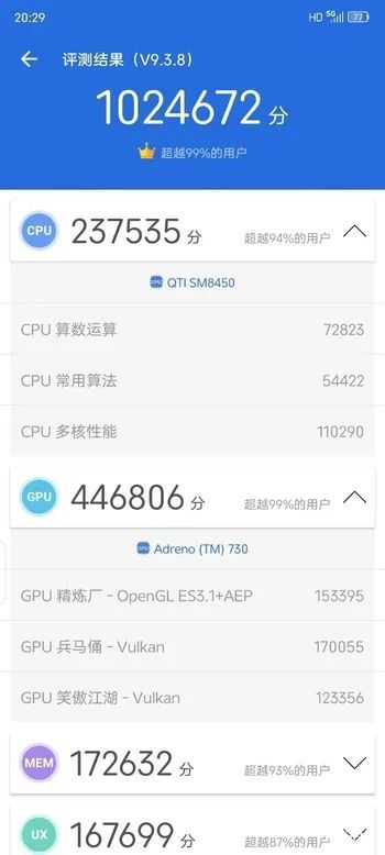 硬件性能:骁龙8 Gen1加持,百万跑分成员