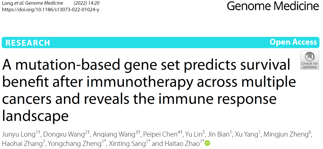 近日,北京协和医院赵海涛团队在Genome Medicine(IF =11.12)上发表了最新研究成果[1]。研究团队构建了一个基于突变的11基因集,可将癌症患者分为高风险和低风险组。经多维数据研究验证,该11基因集与不同癌症亚型的ICI治疗免疫应答相关,且被证明是ICI治疗后独立的预后因素。