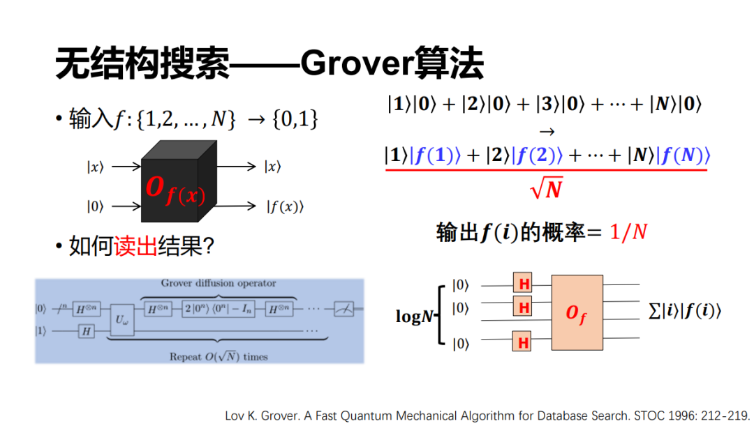 我们也知道,量子计算在 90 年代突然火了起来,其中一个重要的原因是两个重要算法的提出,即 Shor 算法和 Grover 算法。