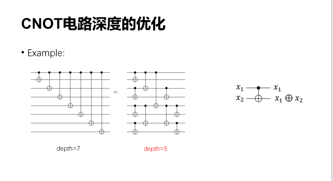 之前我们做了这样一个工作,就是去讨论 CNOT 电路的线路深度。众所周知,CNOT 加上单比特门就是 Universal 的,可以生成任何的量子电路。所以,CNOT 电路有一定的重要性。