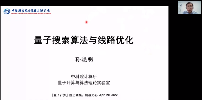 4 月 20 日,在机器之心「量子计算」线上圆桌活动中,机器之心邀请到了中科院计算所研究员、量子计算实验室主任孙晓明。他的演讲主题为《量子搜索算法与线路优化》,报告简要回顾了搜索算法和线路优化的发展以及目前面临的挑战,介绍了其团队在这两方面的一些工作进展。