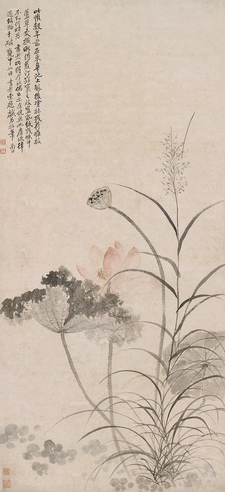 这毫无纤埃的天空,湛然皎洁的月光,身御泠风,遨游于洪崖、汗漫之地与清真逍遥、空明澄澈的仙境,应当为恽格所探寻的,书画境界的理想写照。恽寿平生逢乱世,饱经困苦,一生坎坷。年少即随父远涉浙闽数省,入清之后,随父居于乡下,过着清苦的生活。但他性情拓落,誓不科举,鬻画为生。这种“居阆风之上,和上古琴弦,食太羹之味”“天际真人”的生活情态与他的生活现实有着天地云泥之别。正是他对这份“清真”艺术理想的追求,使他陶铸心性之外,“乃致冥通之奇”。正如他的画作,虽赋色但色彩清丽淡雅,形象含蓄而不妖,给人以“静”“净”之感,亦当为“天际真人”理想之形态。