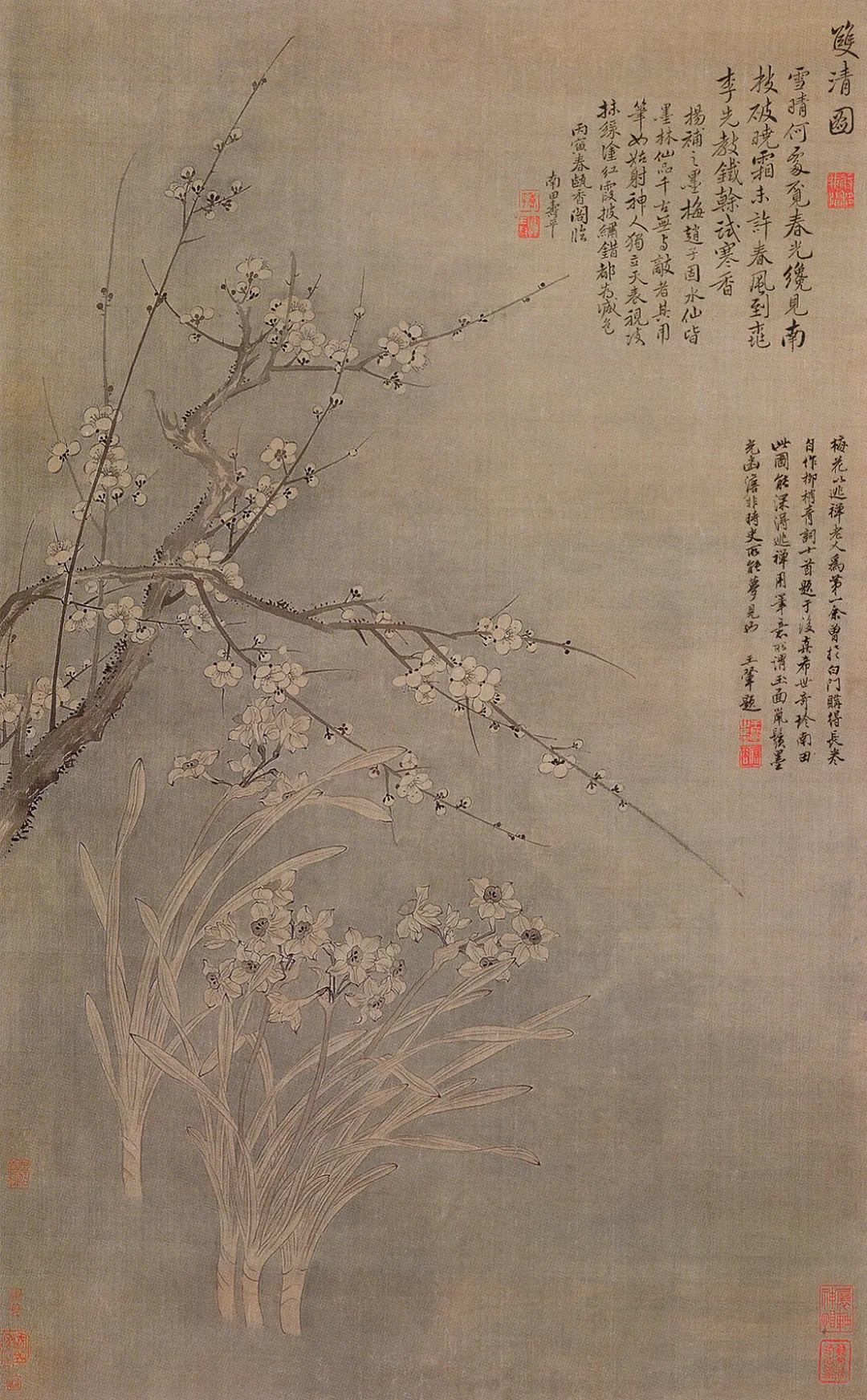 不止于此,“清”的艺术心灵与“清”的书画作品之间的审美作用是双向的、反哺的、动态的。“宋人有《艳雪图》,元人有《双清图》,皆称神品。笔墨奇逸,气韵清妍,真如乘云御风,以游于尘埃之外,殆非时史所能拟议也。此帧合两图意趣成之,正当澡刷灵襟,洗发新赏。”