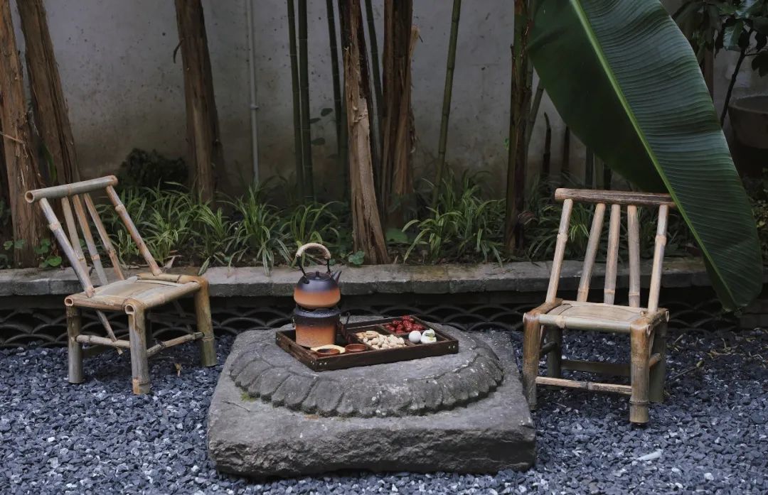 院子主人索性就把院中蕉叶矮椅画到了茶器之上,这是茶与器的美妙转化,也是吃茶的物外修行。当尘世酷热,便来到一片蕉叶里乘凉;当细雨绵延,便窗前倚靠闲看雨打芭蕉。