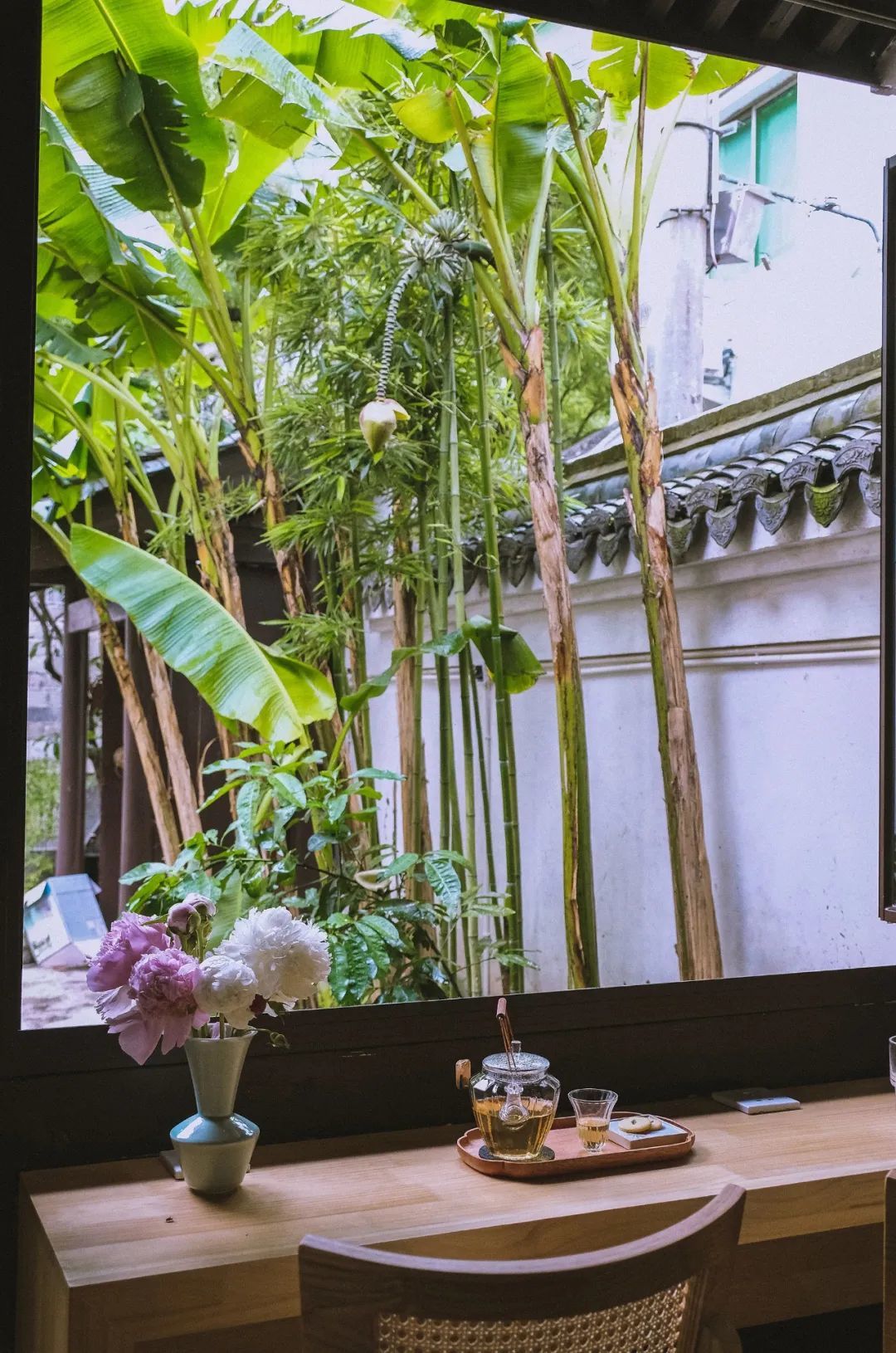 我坐在院里的芭蕉树下,偶见细碎阳光从叶中洒落竹椅中,突然就想起了宋人李清照的《添字采桑子·窗前谁种芭蕉树》,“窗前谁种芭蕉树,阴满中庭;阴满中庭,叶叶心心、舒卷有余情。” 顿觉妙趣横生。